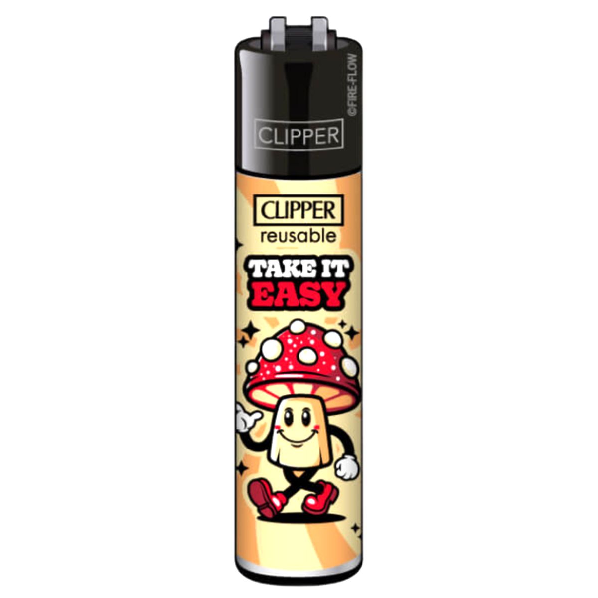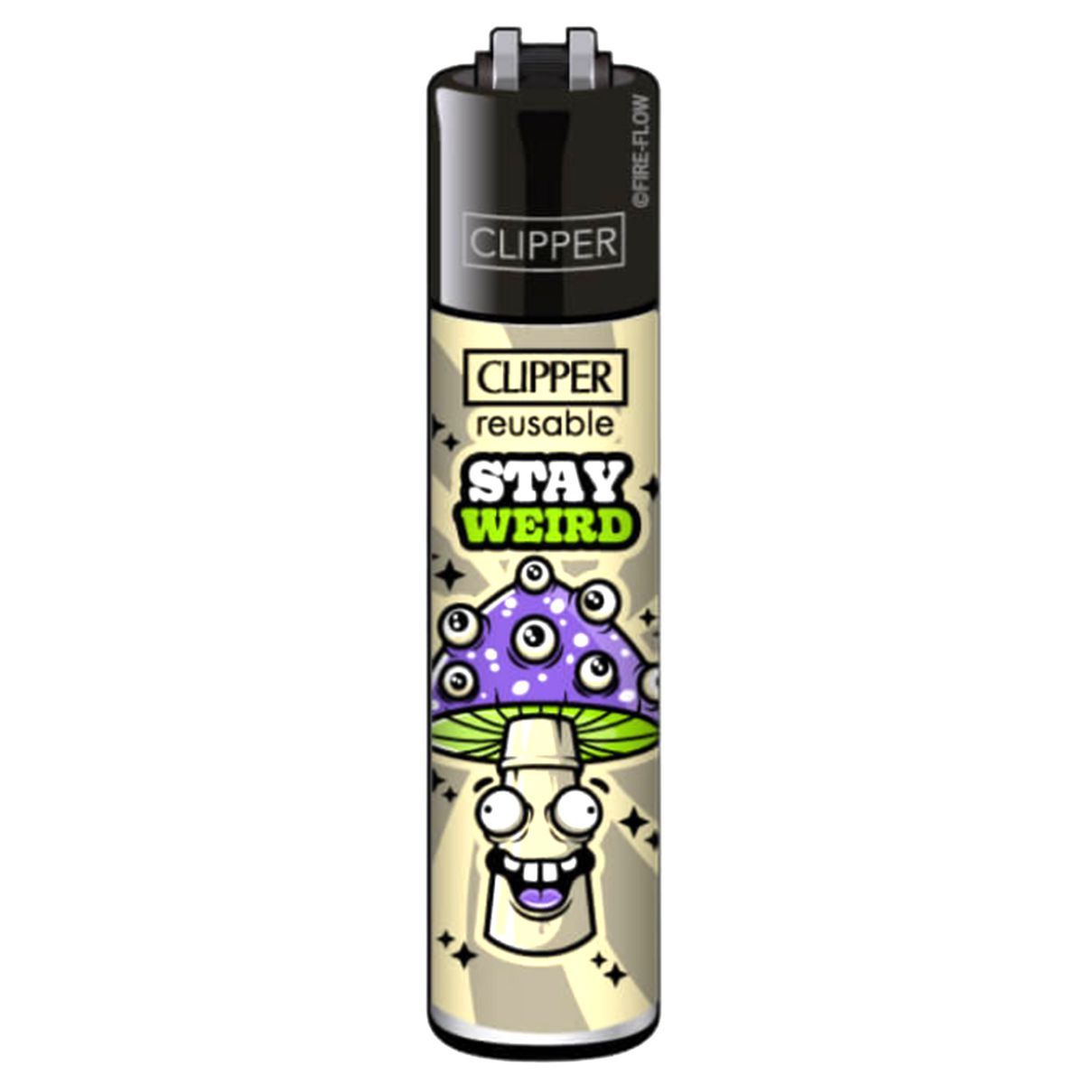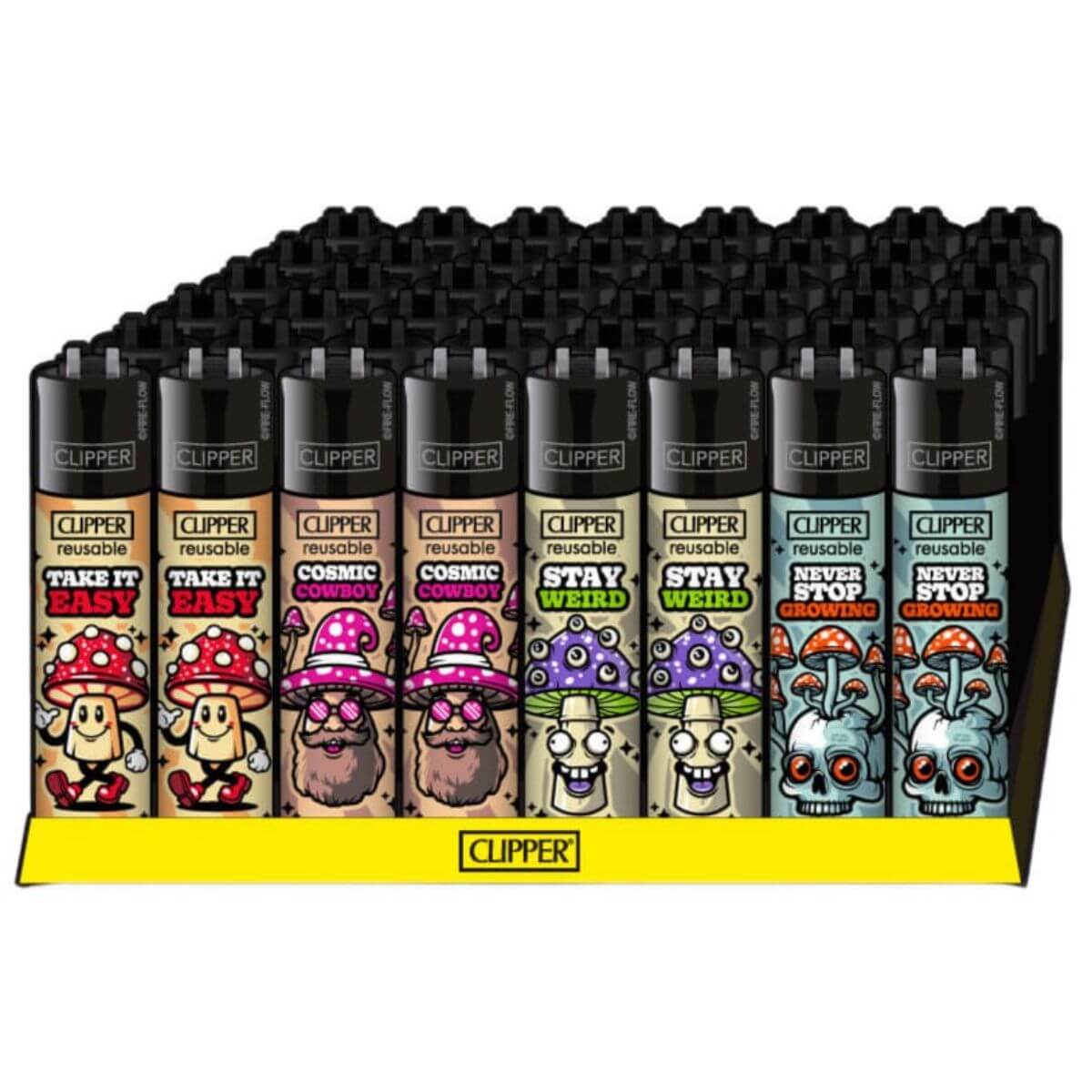 - 48 encendedores recargables Clipper Classic Shrooms #12 en una caja expositora lista para la venta al por menor
