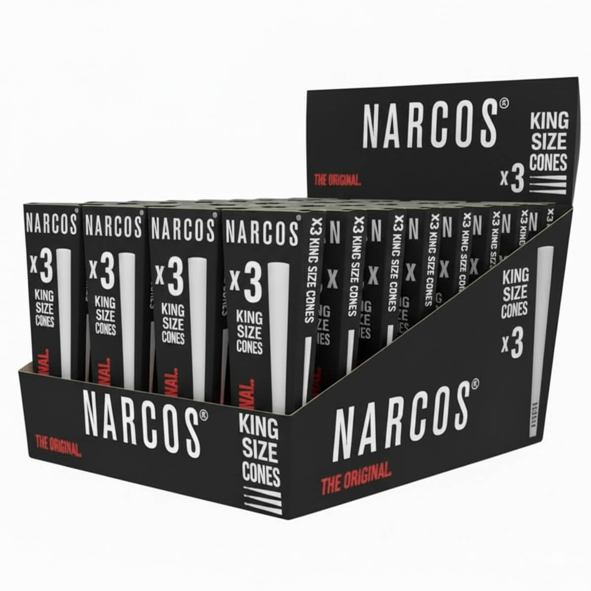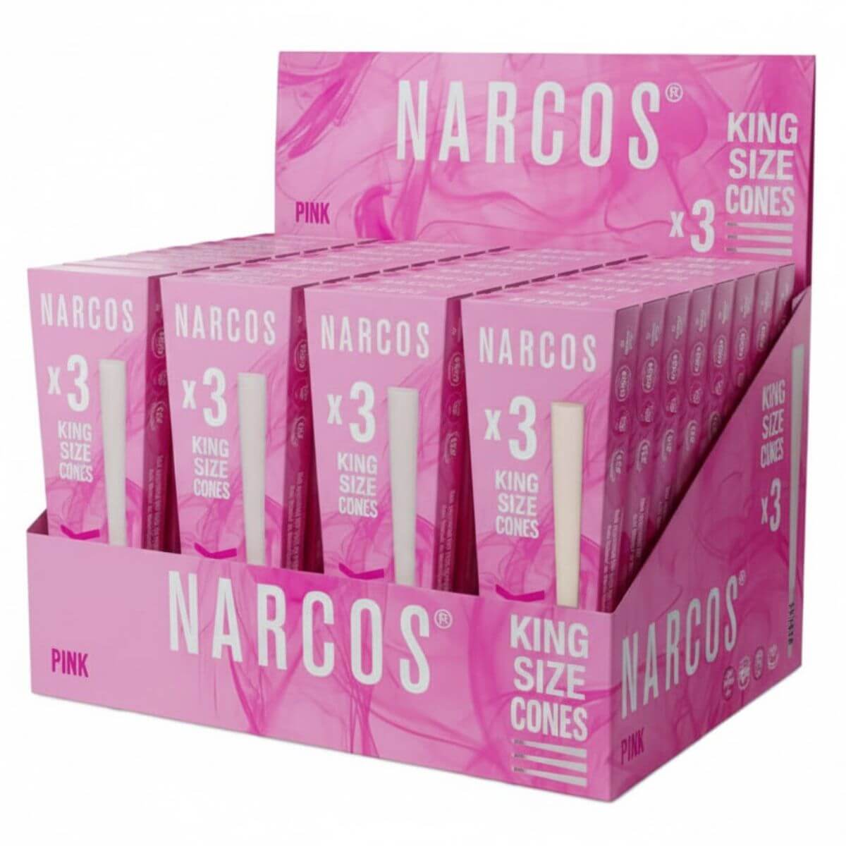 Los conos Narcos King Size de 109 mm (32 unidades/expositor) ofrecen una experiencia pre-enrollada de primera calidad que combina comodidad, calidad y una marca icónica inspirada en la exitosa serie Narcos. Cada cono está hecho de papel de alta calidad y combustión lenta para una quemadura uniforme y suave que preserva el sabor de los materiales legales para fumar. Perfectos para los fanáticos de la serie y los consumidores centrados en el estilo de vida, estos conos ofrecen estilo y funcionalidad. Empaquetados en un expositor de 32 piezas, proporcionan una fuerte presencia en los estantes y un fácil almacenamiento para los minoristas y mayoristas que buscan aumentar el impacto visual y las ventas.