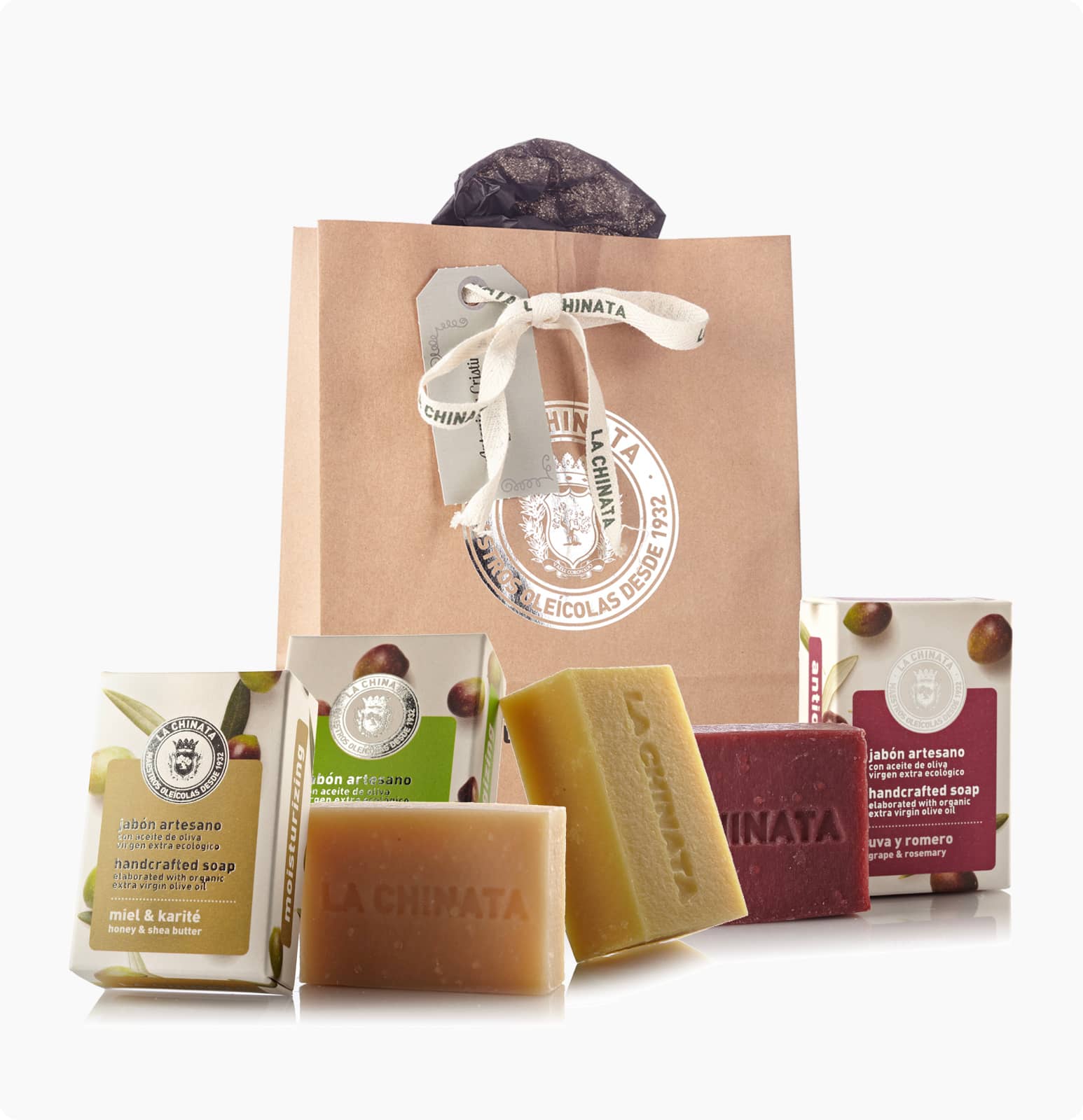 Contenido del Regalo Jabones Artesanos, Uva-Romero, Ginseng-Lima y Miel-Karité